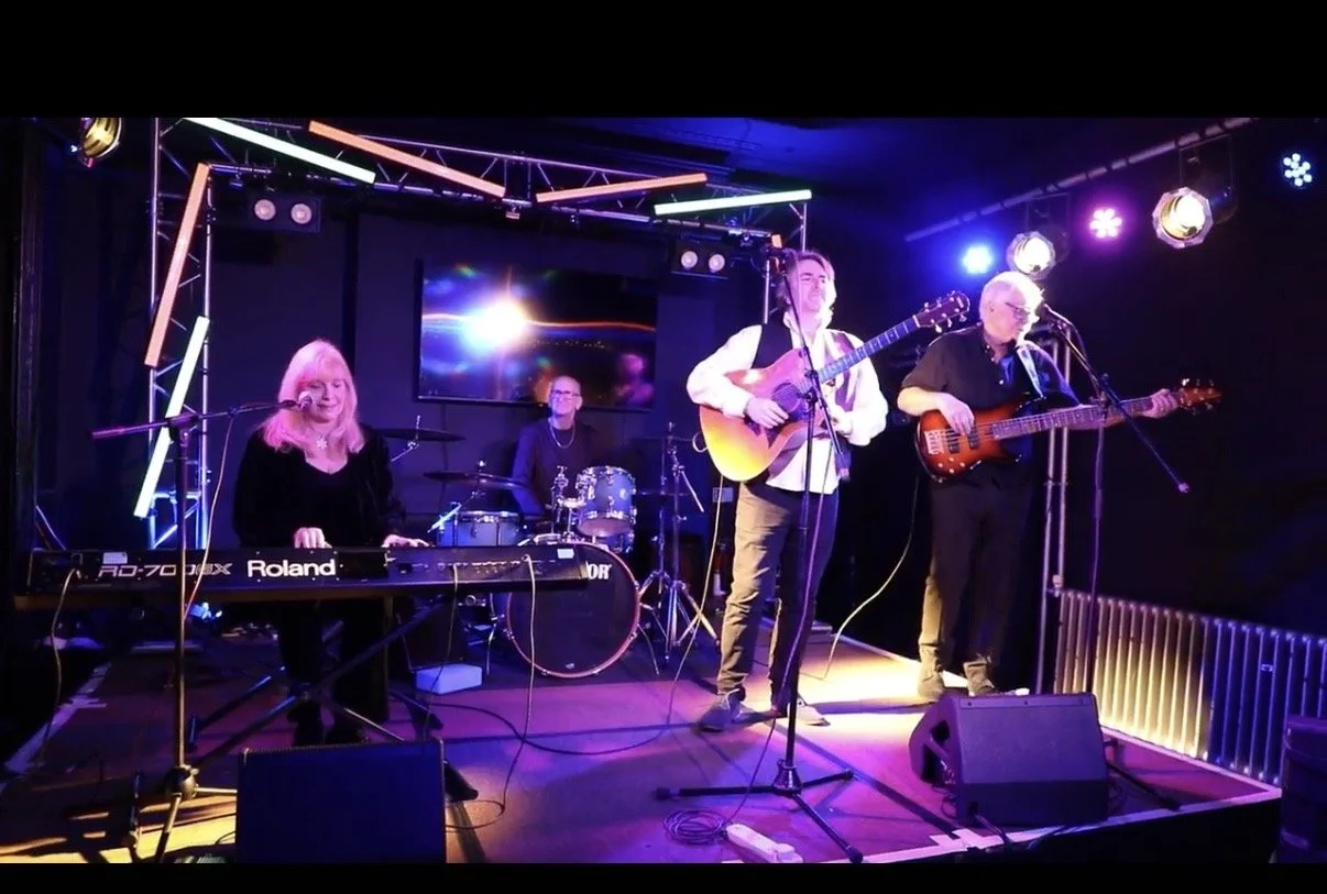We are four professional musicians. Rebecca Turner, singer, pianist and songwriter. Michael Goulding, guitarist, songwriter and session musician. Tony Hammond, bass player and pianst, and John Shearer, world-class drummer, who has toured with so many well-known artists, including a long collaboration with Steve Hackett (ex-Genesis).